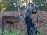 No I-DEER! Wildlife photographer is clueless stag has crept up behind him as he tries to capture the perfect shot at London park
