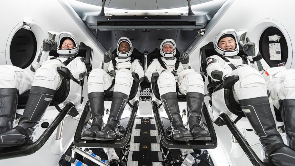 The crew of three Americans and one Japanese are scheduled to rocket away Saturday night. It will be a speedy trip to the space station, a six-orbit express lasting under nine hours.
