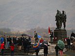 Socially-distanced crowds of people stood in sombre silence at the Commando memorial in Spean Bridge, Scotland.