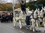 As loved ones arrive for the funeral, a hearse carries flower tributes reading ‘cousin’ and ‘brother’