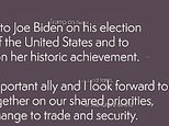 Issued in the aftermath of TV networks calling the knife-edge result for Mr Biden, it quoted Boris Johnson offering congratulations to him and vice-president elect Kamala Harris on her ‘historic achievement’.