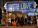 Millions of Britons have today been given a major boost that their number one Christmas wish – to be with their family members – could be granted this year. Pictured: Pedestrians wearing face masks walk past Christmas lights on Oxford Street yesterday