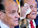Clean-up time: Shortly before the end of the press conference Rudy Giuliani managed to wipe away most of the brown streak on his face