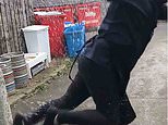 Going out with a bang! Painful moment waiter jumps onto a bag of water and smashes face-first into a bollard as he messes around on his final shift