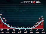 This signals a much smaller rise in the number of Covid deaths compared to last week – with the actual increase standing at 53 per cent.