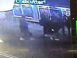 The group – captured on CCTV – are believed to have clashed with a rival group a hundred yards up the road when three shots were fired and the innocent bystander – a 32-year-old woman – was shot in the chest.