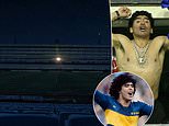 Boca Juniors switch off all the lights at the iconic stadium and leave only Diego Maradona’s box lit up as Argentine giants pay tribute to their former icon after his death at 60 from a heart attack