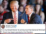 ‘It is my Great Honor to announce that General Michael T. Flynn has been granted a Full Pardon,’ Trump tweeted on Wednesday