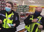 After being asked whether she has broken the law, one of the officers says she has ‘broken a guideline’. The clip was shared online and said to have been filmed in Farmfoods