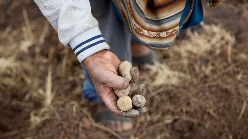 Across this South American nation an estimated 7 million peasants like the 51-year-old Quispe toil small plots of land to feed their families and earn a living. Strict quarantines early in the pandemic made transporting beans, potatoes and other crops to markets difficult. Prices plummeted as demand dropped.