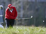 He saluted as he was disembarked Marine One at his golf club wearing a ‘MAGA hat’, with his sons Eric Trump, Donald Trump Jr. and Kimberley Guilfoyle in tow