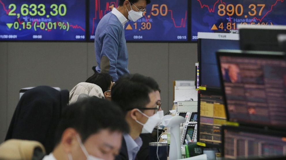 France’s CAC 40 fell 0.3% to 5,579.72 in early trading, while Germany’s DAX inched up less than 0.1% to 13,346.33. Britain’s FTSE 100 gained 0.6% to 6,403.93. U.S. shares were set to decline as Dow futures dropped 0.5% to 29,730.50. S&P 500 futures fell 0.4% to 3,623.38.