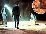The blurry images show the group of men working in the darkness with torches strapped to their foreheads, wearing gloves but not face masks.