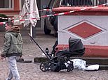 Crushed pram is pictured at scene of German car rampage that left five dead including a baby as driver is revealed as ‘strange’ 51-year-old who ‘started living in his SUV after his mother died’