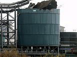 Pictured: The damage to the chemical tank at the Wessex Water sewage treatment plant where four people have died