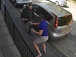 This is the moment a professional cage fighter who murdered his ex-girlfriend in front of her 13-year-old daughter stabbed a concerned neighbour who heard her bloodcurdling screams with a large kitchen knife.