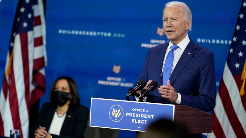 WILMINGTON, Del. — President-elect Joe Biden is pushing ahead with his call for massive economic stimulus as the economic recovery from this spring’s coronavirus lockdowns falters amid a nationwide spike in COVID-19 cases.