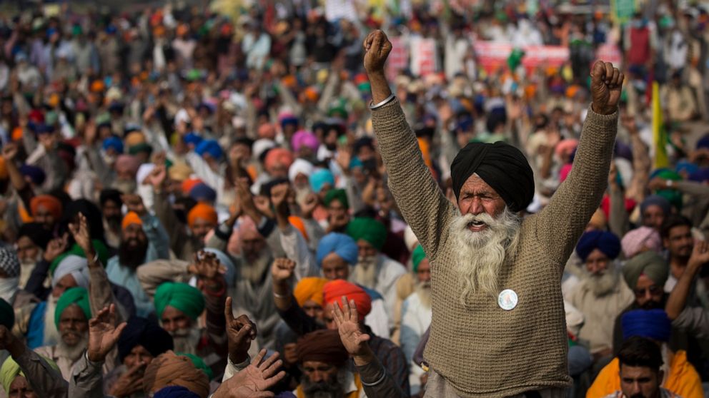 The protesters’ desire to stand up to Modi and his policies extends to a sexagenarian farmer couple who drove 250 kilometers (155 miles) from Chandigarh city in a hatchback Sunday to participate in the demonstrations.