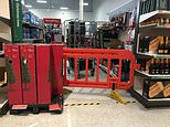 Pictures today emerged of Sainsbury’s in Pontypridd which blocked off non-essential sections of the store using large red barricades (pictured)