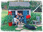 • The couple can be seen playing with their young son in the yard of their home
