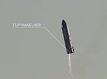 The sideways flip, dubbed a ‘belly flop’ maneuver by Musk, was designed to mimic the technique Starship will use when returning through Earth’s atmosphere from space – presenting the ‘belly’ as it enters the atmosphere reduces the speed of descent as it approaches the ground.