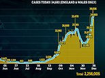 Cases have increased by a third since last Saturday as 34,693 people tested positive in England and Wales alone amid a new highly-infectious strain of coronavirus.