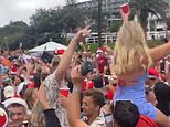 The footage saw hundreds packed together at the gathering as they jumped together and cheered with many waving their arms while sitting on someone’s shoulders.