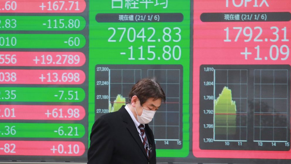 Shares also fell in Tokyo, Shanghai and Sydney, despite broad gains on Wall Street on Tuesday as stocks regained their footing after starting out 2021 with their worst loss in months amid the worsening pandemic and potentially market-moving U.S. Senate elections.