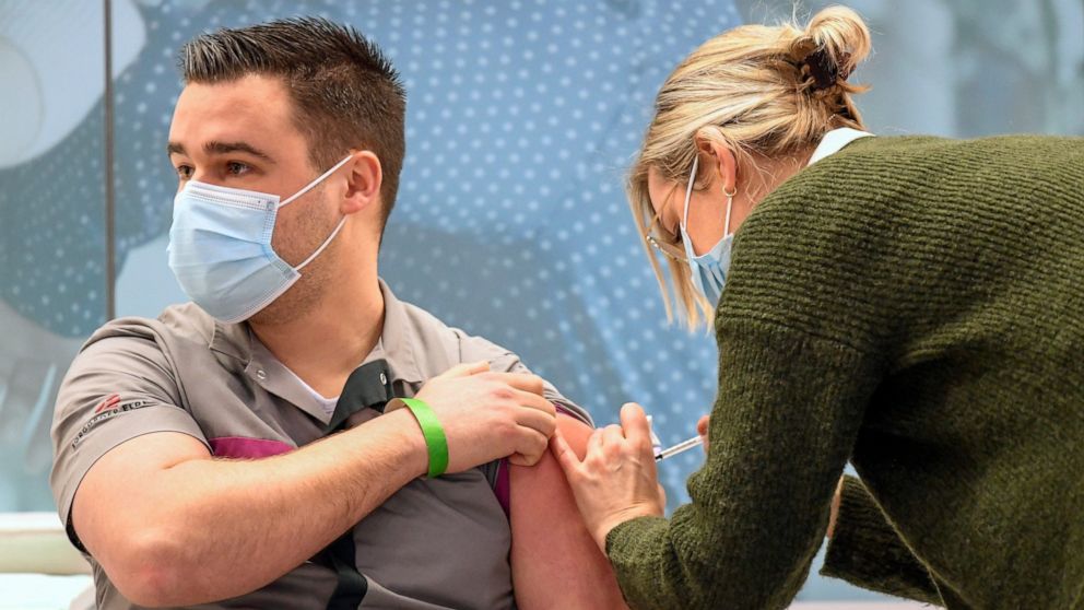 Sanna Elkadiri, a nurse at a nursing home for people with dementia, was the first to receive a shot of the Pfizer-BioNTech vaccine at a mass vaccination center in Veghel, 120 kilometers (75 miles) southeast of the capital, Amsterdam.