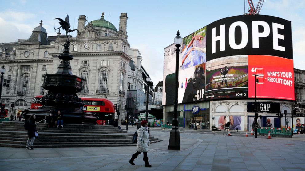 When Johnson on Monday announced the stay-at-home order and the nationwide closure of gyms, pubs, restaurants and nonessential shops, he said the lockdown terms would remain in place until mid-February. By that time, the government hopes to have given one dose of a COVID-19 vaccine to about 13 million people who are most at risk — including everyone in the country over age 70 — and the progress may potentially allowing some relaxation of the restrictions.