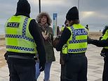 Another three officers appear to arrest a different woman for what she claims was ‘sitting on a bench’ on the seafront.