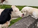 Nice to meet Moo! Adorable moment excited golden retriever licks face of cow after pair struck up unusual friendship