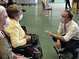 An elderly woman told Matt Hancock he’s the ‘good looking one’ after getting the Covid jab at a new vaccination centre at Epsom racecourse in Surrey.