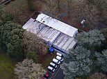 Pictured: The tented temporary mortuary facility at Headley Court near Leatherhead