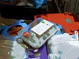 Dutch port officials showed off a pile of confiscated items at the Hook of Holland ferry terminal including Waitrose chicken fillets, Tropicana orange juice, marmalade oranges and even Dorset Cereals muesli. The caption says: ‘Are you bringing food from the UK?’