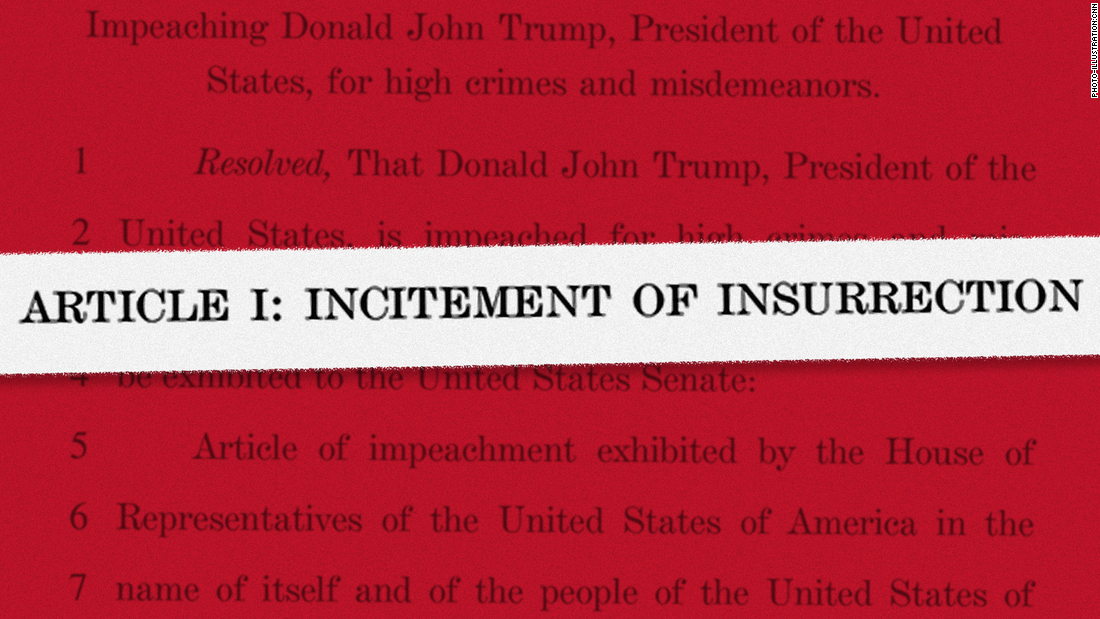 (CNN)Democrats in the House of Representatives on Tuesday evening released the final text of their resolution to impeach President Donald Trump, charging him with “incitement of insurrection.” The House will vote on the single article of impeachment on Wednesday.