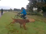 Video captured by a cyclist shows the moment bystanders rushed to chase the dog away from the injured deer as it continued to circle the stricken animal.