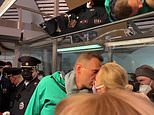 Alexei Navalny kissed his wife goodbye in an emotional scene as he was arrested by Russian authorities just minutes after landing in Moscow