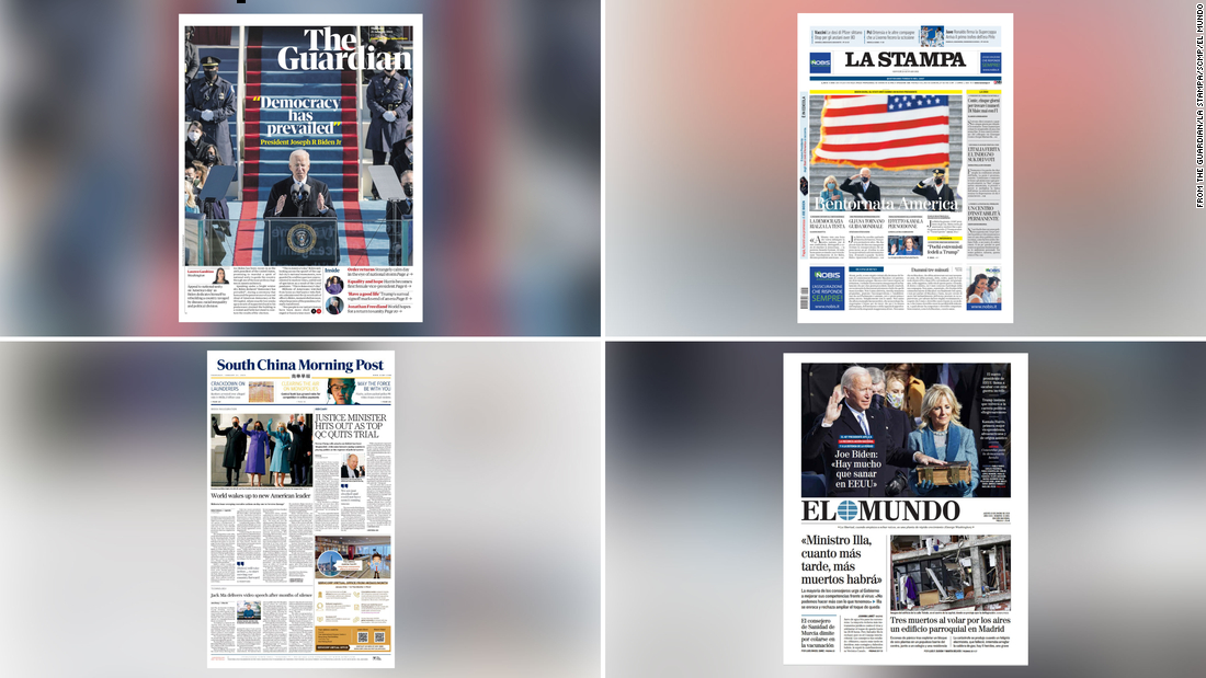 The UK’s Guardian newspaper highlighted the same line, splashing a picture of Biden delivering his speech across its front page, while The Daily Telegraph, focused on another line — Biden’s call to end “this uncivil war” that has divided the US.