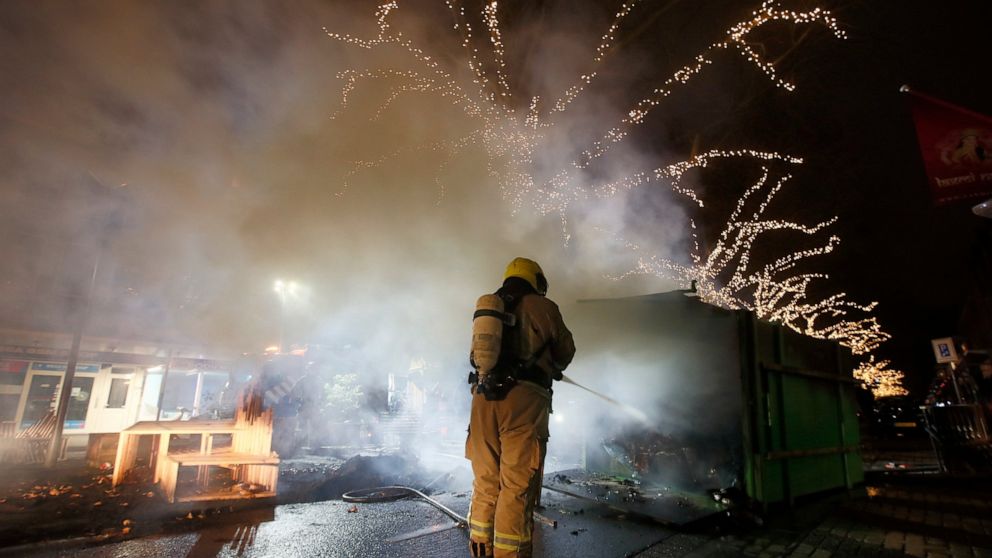 The unrest began Saturday night — the first night of the curfew — when youths in the fishing village of Urk torched a coronavirus testing center. It escalated significantly with violence in the southern city of Eindhoven and the capital, Amsterdam.