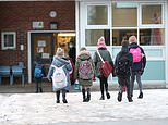 Gavin Williamson is drawing up plans for a phased return to school which could begin before Easter. Pictured: Children arrive at Manor Park School and Nursery in Knutsford, Cheshire, earlier this month