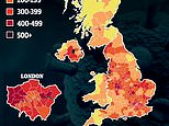 Sandwell in the West Midlands has the second highest rate, down from 840.6 to 546.8, with 1,796 new cases. Slough in Berkshire is in third place, down from 807.8 to 543.0, with 812 new cases.