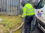 ‘Look at the size of it!’ Shocking moment 14ft SNAKE is found on Scottish construction site