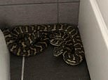 Why you should ALWAYS check the toilet seat before sitting down: Horrified woman finds huge python slithering around her bathroom