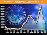 - Daily infections have plummeted 70 per cent since peak on New Year’s Day, when it was 69,000 daily cases