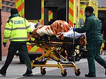 Ambulance staff bring a patient into the Royal London hospital in London today. Hospitals are still under immense strain and intensive care wards remain swamped despite the drop in coronavirus cases, an NHS boss warned tonight