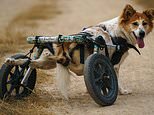 Shelter official Christopher Chidichimo said ‘It’s almost like they have no idea that they have a disability’ once the dogs are placed in the wheelchairs for the first time