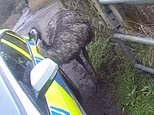 Escapee emu tries to peck way into a police car after officers sent to try and capture 5ft high bird