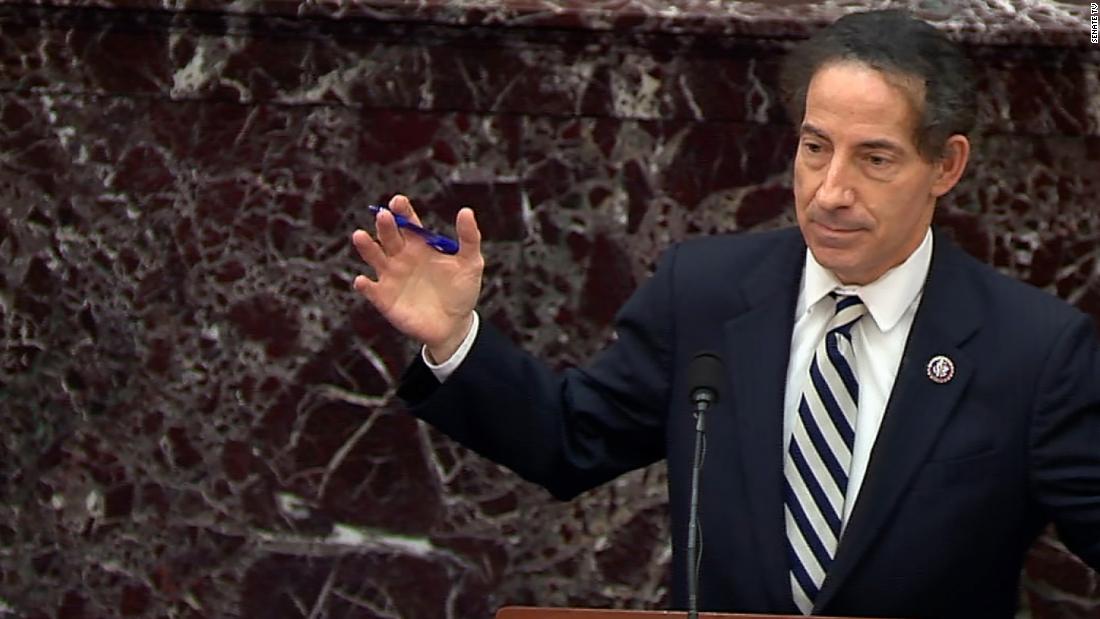 This wasn’t a “radical break” from Trump’s rhetoric, said lead impeachment manager Rep. Jamie Raskin. “This was his M.O.”