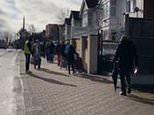 London’s Community Kitchen livestreamed people queuing 7ft apart outside the bank in Wembley, West London on Saturday at 11am